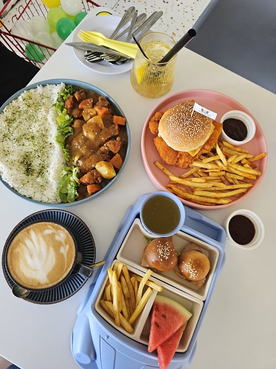 Food here leans towards familiar, kid-friendly choices with a modest menu that balances between child and adult appetites. The Japanese Curry Chicken Katsu comes with a rich, savory sauce, and options like the Oh My Fish Burger and Breaded Fish & Chips offer straightforward, satisfying meals. Snack selections such as curly fries and popcorn chicken are easy crowd-pleasers for younger diners. While the drinks menu includes playful options like Ribena Lychee and Calamansi sodas, it tilts towards syrups rather than fresh-pressed juices, which is worth noting for families seeking healthier beverages.