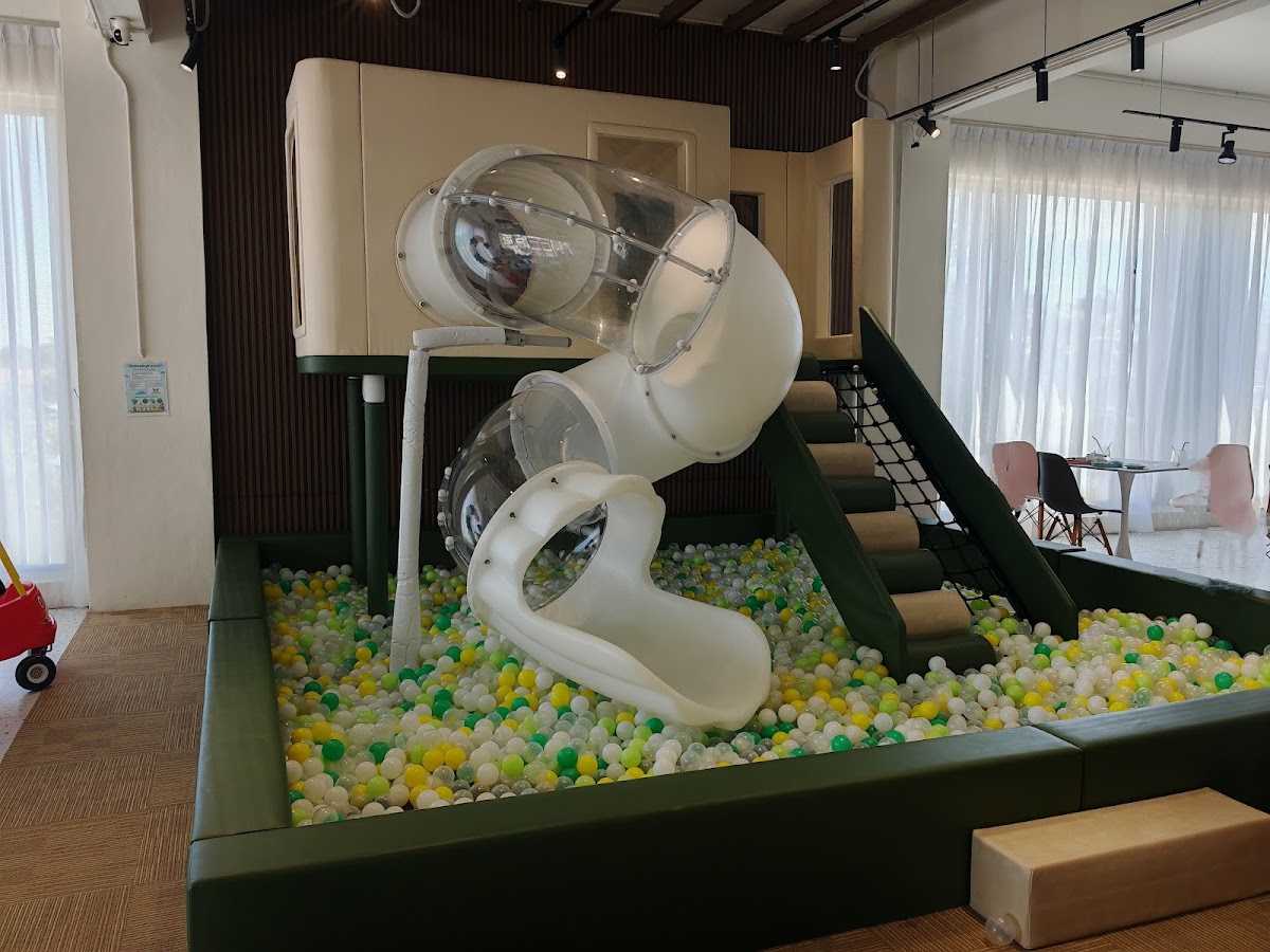 Tiny Palm Playground X Kids Cafe sits quietly on the first floor along Lorong Suria Inanam, serving as a practical spot for families in Kota Kinabalu looking to combine dining with playtime. This children’s cafe blends a casual restaurant setup with a dedicated indoor playground, making it a place where parents can unwind while their little ones explore safely within sight.